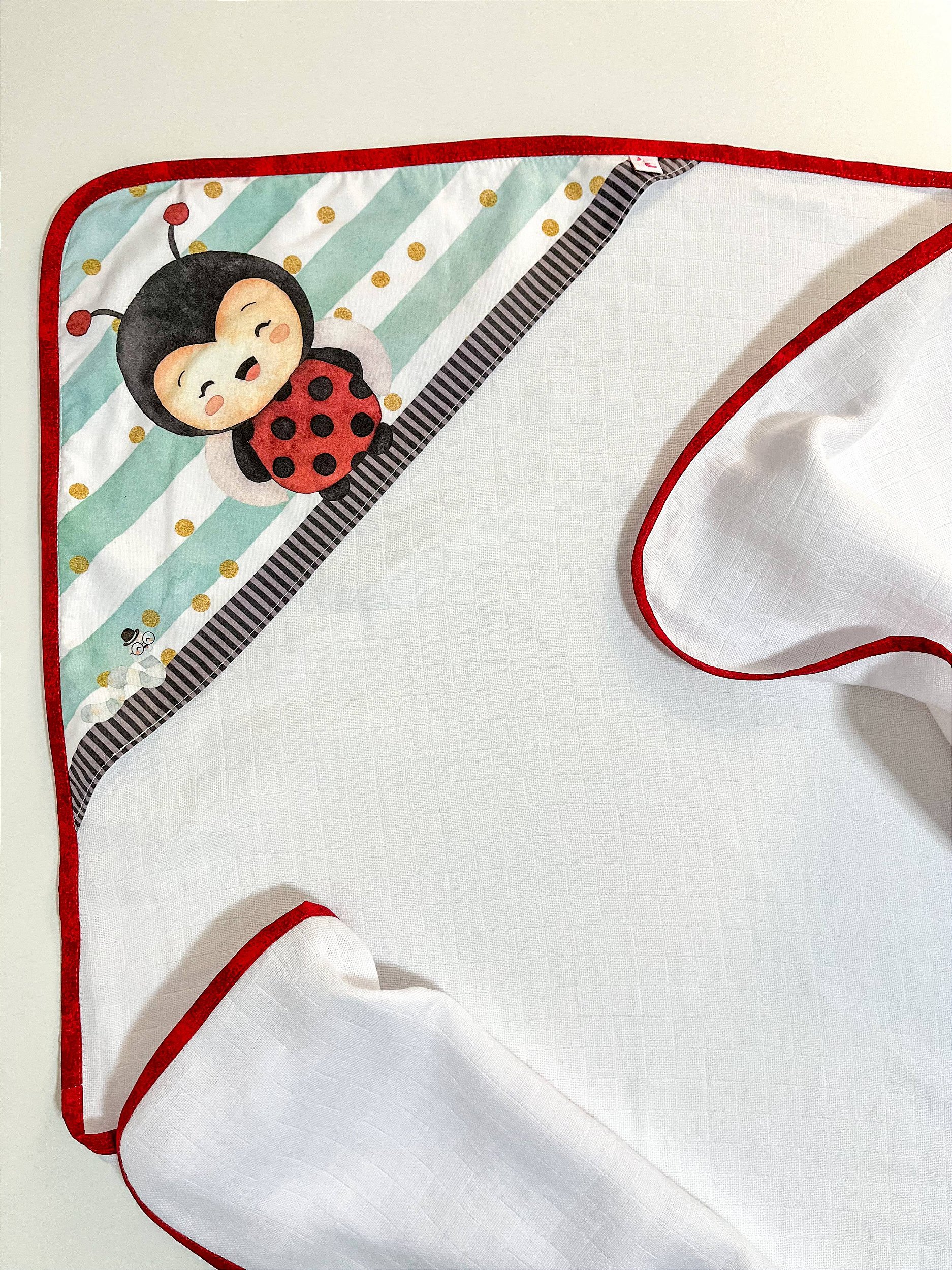 Toalha Fralda com Capuz Joaninha